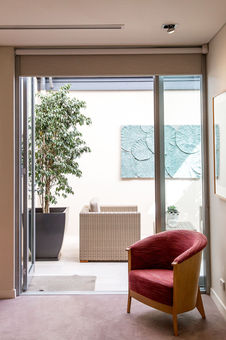 Spacious balcony and outdoor dining area with BBQ, as well as a peaceful private courtyard.